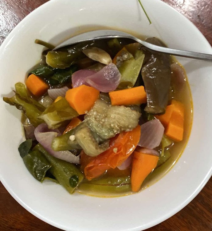 Called “Law-Oy” in Cebu, this vegetable stew of 10 vegetables and spices is an all-time favorite (note – run out Moringa and squash during the cooking and carrots was used on behalf of squash)