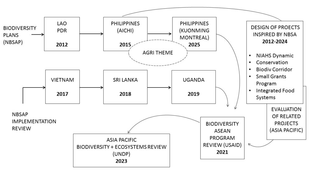 My biodiversity journey (above) – This journey revolved around helping country teams prepare plans and targets and implement what they promised for their biodiversity issues (Above diagram is a snap shot of what I did, where (i.e., helping in strategy formulation; translating broad plans into projects and reviewing progress)…