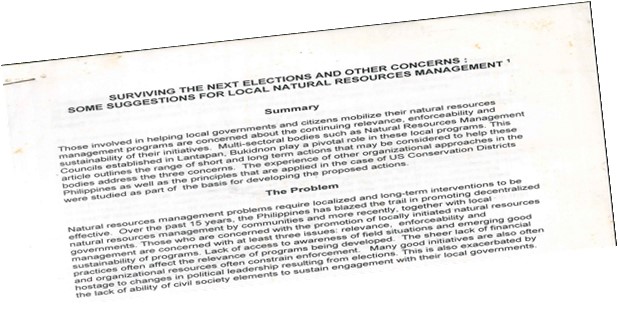 • The USAID Ecological Governance project in the 2000 supported more in-depth capacity building of LGU civil servants on local watershed programs.