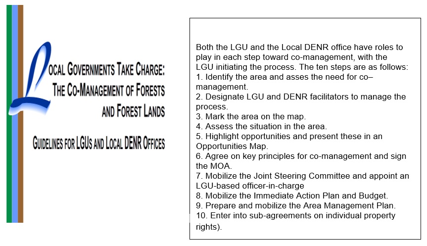Highly centralized control of forests (DENR) was one of the keys “Achilles’ hill “of forest management. National government resources are insufficient to provide adequate forest protection. This prompted a thinking to address this dilemma in a politically acceptable way.